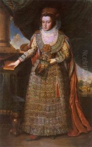 Portrait Of A Lady (anne Of Denmark?) In A White Embroidered Dress