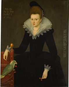 Portrait Of Elizabeth, Sister Of Sir Nicholas Halswell, Wearing A Black Dress, Lace Cuffs And Collar And A Pearl Necklace