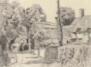 The Barn In The Fields, C.1918, Black Chalk