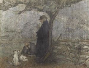 Shepherd And Dogs Under A Tree Oil Painting by Robert Polhill Bevan