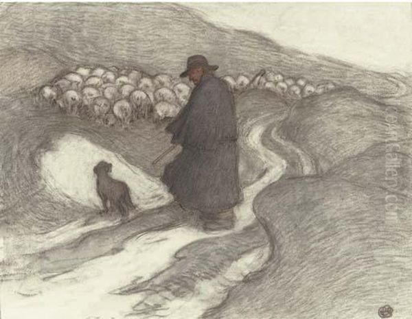 Shepherd And Flock On The Downs
