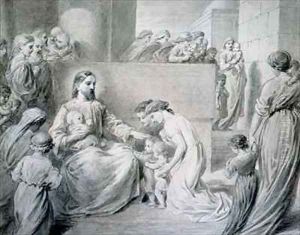 Portrait Of A Brother And Two Sisters Admiring A Watercolor