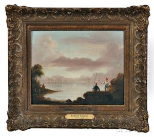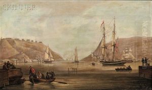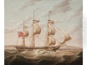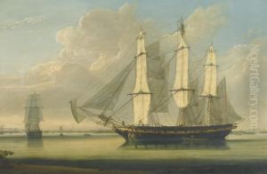 An Armed Packet Drifting Along The Thames Off Woolwich With Galleons Reach Astern Of Her And The East India Dock And Its Masting House Observed Off Her Starboard Bow