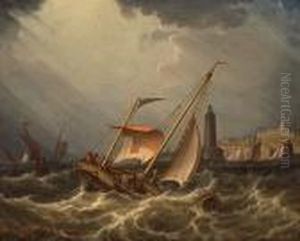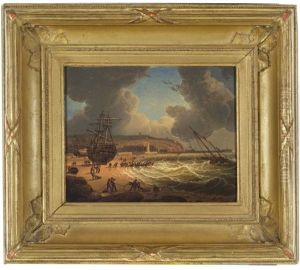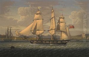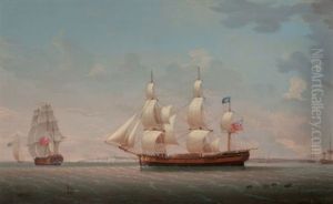 A 16-gun Brig, Probably A Privateer, In Two Positions On The Mersey, Heaving-to And Picking Up The Pilot, An Armed Merchantman Astern Of Her And The Liverpool Waterfront Beyond