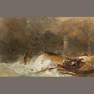 Moonlight Scene With Figures On The Quay At Ramsgate
