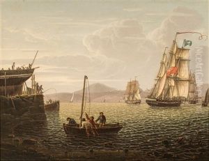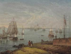Shipping Off Greenwich, Depicting An Active Harbor View With Greenwich In The Distance