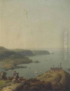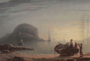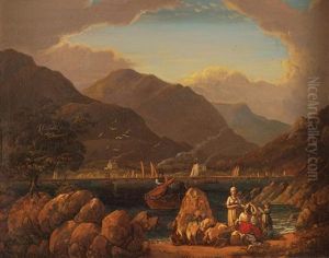 A Scottish Loch With Fisherman And His Family In The Foreground