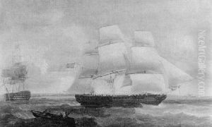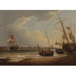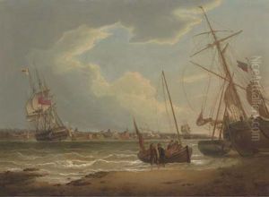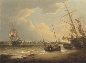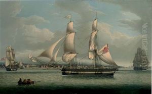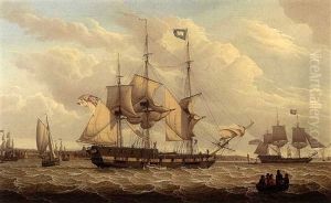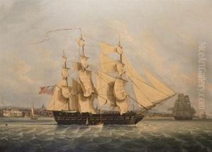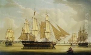 A Fifth Rate Ship Of The Line And A Brig Drying Sails In A Flat Calm On The River Mersey, 1808