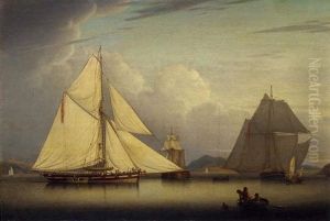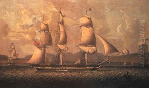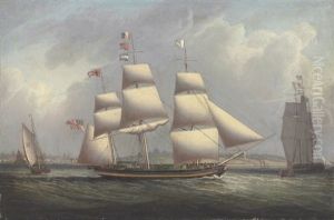 A Privateer Anchored In The Mersey And Drying Her Sails In A Fresh Breeze