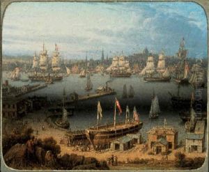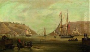 Vessels In A Harbor/royal Naval Fort At Milford Haven, England (?)