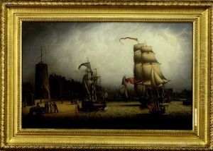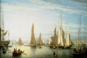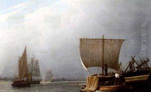 Merchant Ships Off Liverpool, Drying Their Sails Whilst Lying In The Mersey River