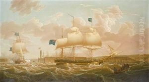 A Privateer In Two Positions Leaving Whitehaven Harbour