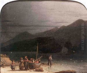 An Afternoon On The Lake With A Cottage And Ruins In The Distance