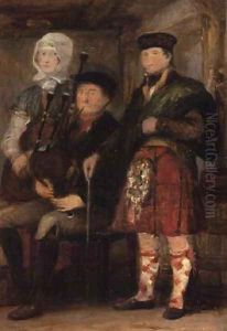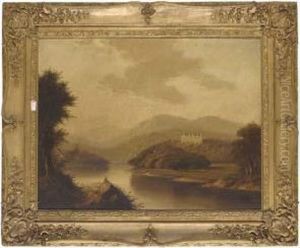 A Scottish Loch With Fisherman And His Family In The Foreground