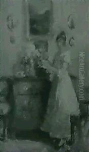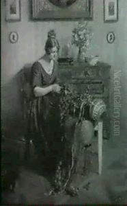 Junges Madchen Beim Winden Einer Girlande In Einem Biedermeierinterieur