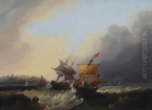 A Two-decker Running Out Of The Harbour At Portsmouth In A Stiff Breeze