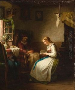 Bring the timeless beauty of Robert W. Wright's Grandfather's Tale; And Pocket Money into your home with a handmade oil painting reproduction. Carefully recreated on canvas by skilled artists using traditional techniques, this piece captures the delicate brushwork, subtle light, and vibrant color of the original masterpiece. With museum-level quality and rich texture, it brings elegance and artistic depth to any space. Enjoy free shipping and make this masterpiece a part of your personal collection.