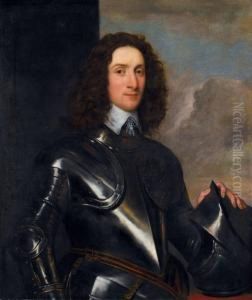 Portrait Of A Gentleman, Said To Be Conyers D'arcy, The First Earl Of Holderness, Half-length, In Armour, Holding A Baton And His Hand Resting On A Helmet, Standing Before A Curtain