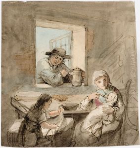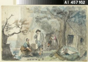 Varvays hamalaisessa talonpoikaistuvassa, luonnos venalaiselle kruununperijalle 1851 maalattuun oljymaalaukseen.