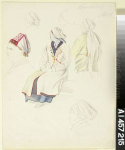Harjoitelmia Kaukolalaisista talonpoikaisnaisista kansallispuvuissa