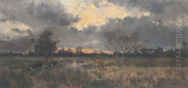 Bring the timeless beauty of Robert William Arthur Rouse's Cattle Grazing At Sunset into your home with a handmade oil painting reproduction. Carefully recreated on canvas by skilled artists using traditional techniques, this piece captures the delicate brushwork, subtle light, and vibrant color of the original masterpiece. With museum-level quality and rich texture, it brings elegance and artistic depth to any space. Enjoy free shipping and make this masterpiece a part of your personal collection.