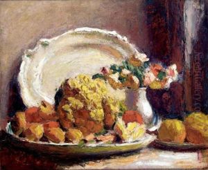 Still Life With Vase Of Flowers And Fruit On A Tray
