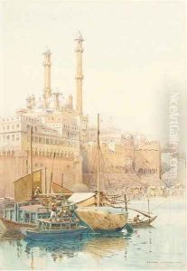 A Snake Boat On The River (+ Courtyard Interior, Benares; 2 Works)