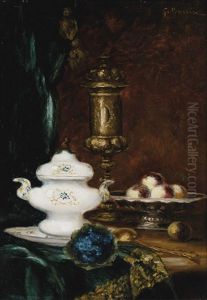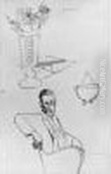 Etude Pour Un Portrait De Gampert - Vase De Fleurs Et Soupiere