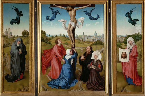 Bring the timeless beauty of Rogier van der Weyden's Crucifixion Triptych into your home with a handmade oil painting reproduction. Carefully recreated on canvas by skilled artists using traditional techniques, this piece captures the delicate brushwork, subtle light, and vibrant color of the original masterpiece. With museum-level quality and rich texture, it brings elegance and artistic depth to any space. Enjoy free shipping and make this masterpiece a part of your personal collection.