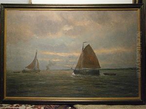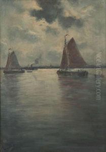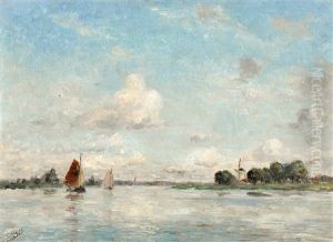 Zeilboten Op De Schelde Met Dorp Aan De Oever