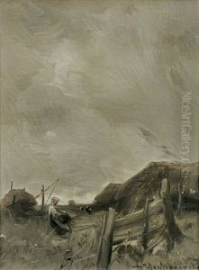 Junge Bauerin In Halbfigur Vor Einem Geflochtenen Zaun