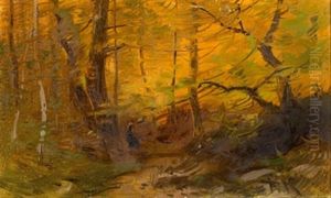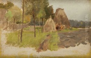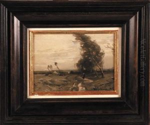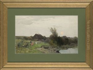 Pejzaz Z Trojgiem Ludzi Przy Lodziach