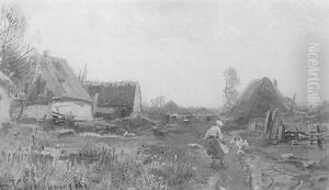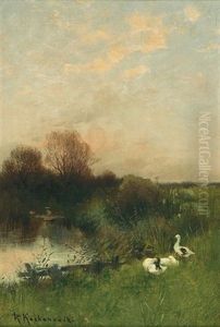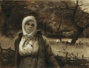 Magd Mit Gansen Auf Einer Sommerlichen Wiese