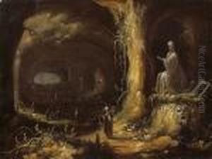 Interior Of A Grotto With Figures In Oriental Dress Before Shrines