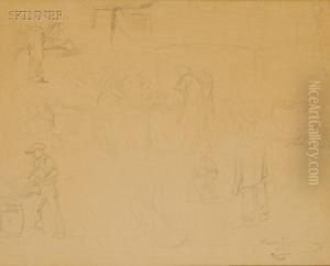 Sheep Resting, A Single Sheep And Studies Of A Sheep (three Works)