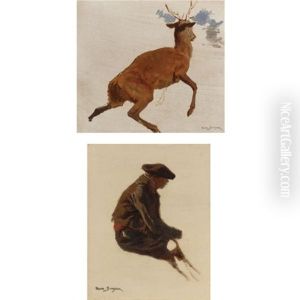 Studies: Stag And A Man (two Works)
