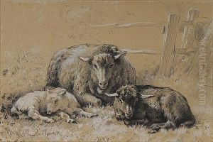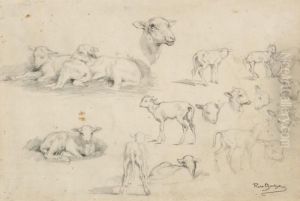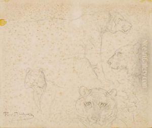 A Pair Of Lions, Sheep And Studies Of A Lioness