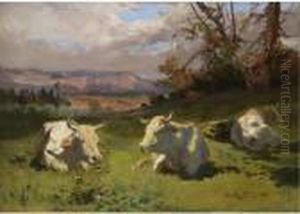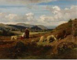 A Shepherdess With A Goat And Two Cows In Ameadow