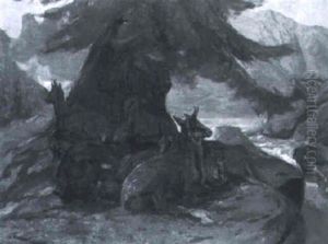 Cattle On Hillside Pastures (collab. W/auguste Bonheur)