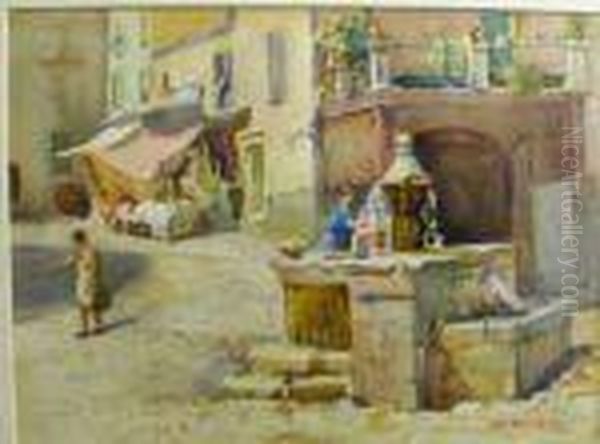 Italian Street Scene With Figure At A Fountain