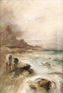 Staithes, A Coastal Landscape With Figures On The Shore