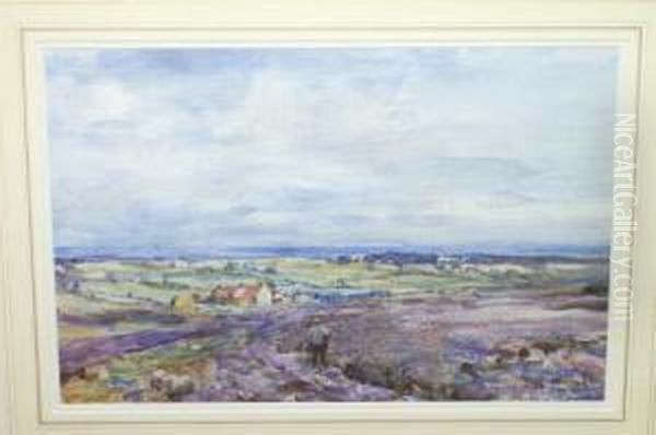 "farm Above Runswick Bay, Sea In The Distance" Signed And Dated "1924", Also Inscribed On A Later Label Verso