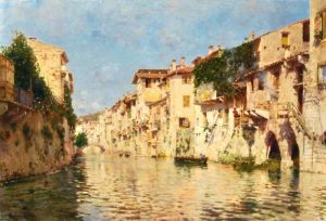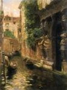 A Woman Carrying Water Beside A Venetian Canal