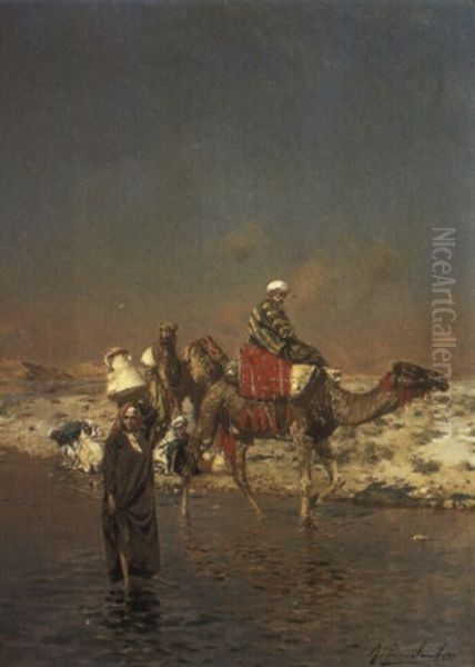Bring the timeless beauty of Rubens Santoro's A Caravan At An Oasis into your home with a handmade oil painting reproduction. Carefully recreated on canvas by skilled artists using traditional techniques, this piece captures the delicate brushwork, subtle light, and vibrant color of the original masterpiece. With museum-level quality and rich texture, it brings elegance and artistic depth to any space. Enjoy free shipping and make this masterpiece a part of your personal collection.