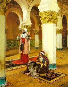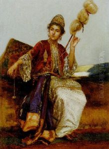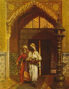 A Tambourine, Knife, Turkish Box, Turkish Jug, Moroccan Tile And Plate On A Satin Covered Table
