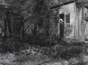 Zwei Spielende Madchen Unter Dem Bluhenden Holunderbusch