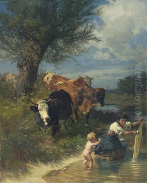 Bring the timeless beauty of Rudolf Koller's Cows And Washerwoman Near A Brook into your home with a handmade oil painting reproduction. Carefully recreated on canvas by skilled artists using traditional techniques, this piece captures the delicate brushwork, subtle light, and vibrant color of the original masterpiece. With museum-level quality and rich texture, it brings elegance and artistic depth to any space. Enjoy free shipping and make this masterpiece a part of your personal collection.