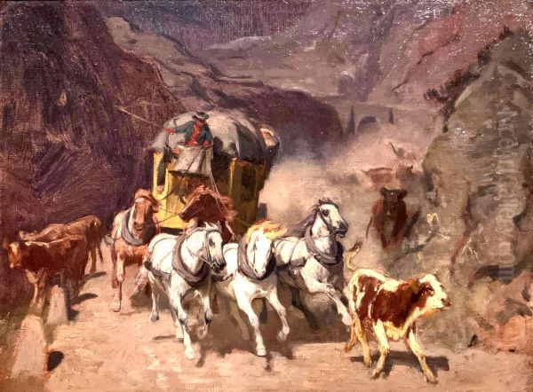 Die Gotthardpost; Oelstudie 1873