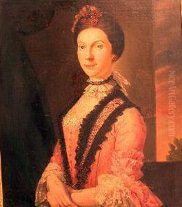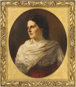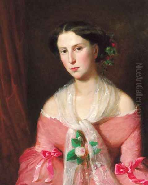 Portrait of a young lady, three-quarter-length, in a pink dress and a lace shawl