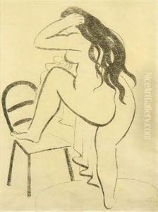 A Female Nude Kneeling On A Chair